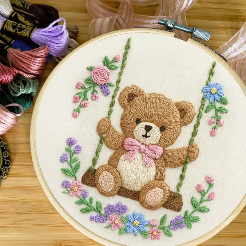Rubbyoo Embroidery Kit - Swing & Plush Teddy Bear | Baby Gift | Beginner Friendly