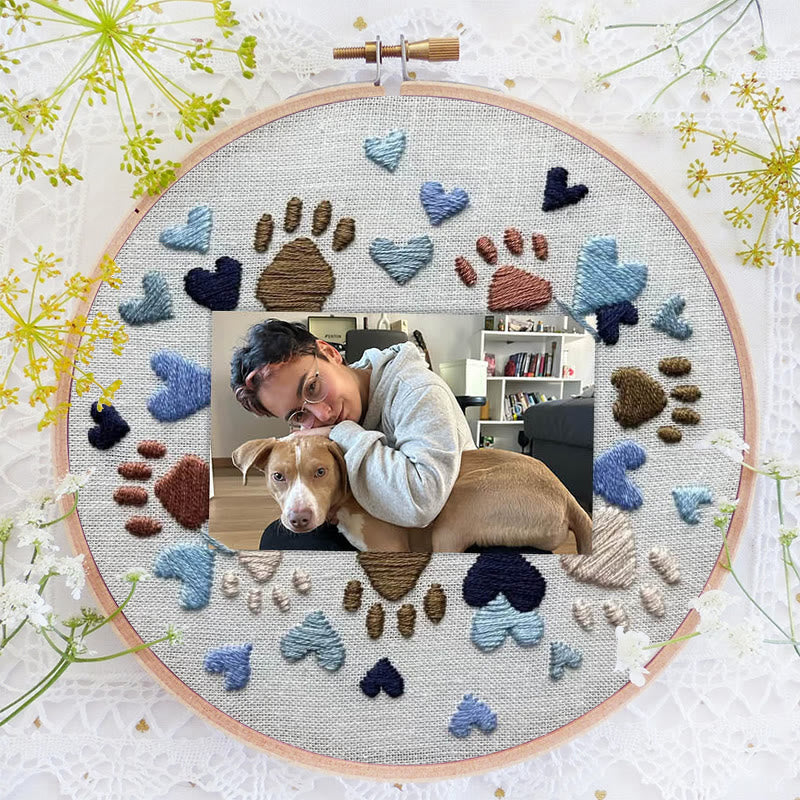 Rubbyoo Embroidery Photo Frame Kit - Adorable Paw Print | Memorable Handmade Craft | Diy Needle Artwork