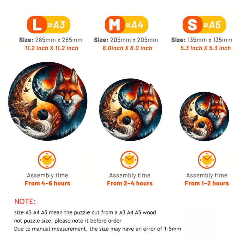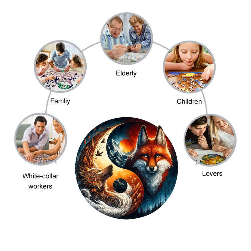 Rubbyoo Fox and Wolf Yin Yang - Wooden Jigsaw Puzzle