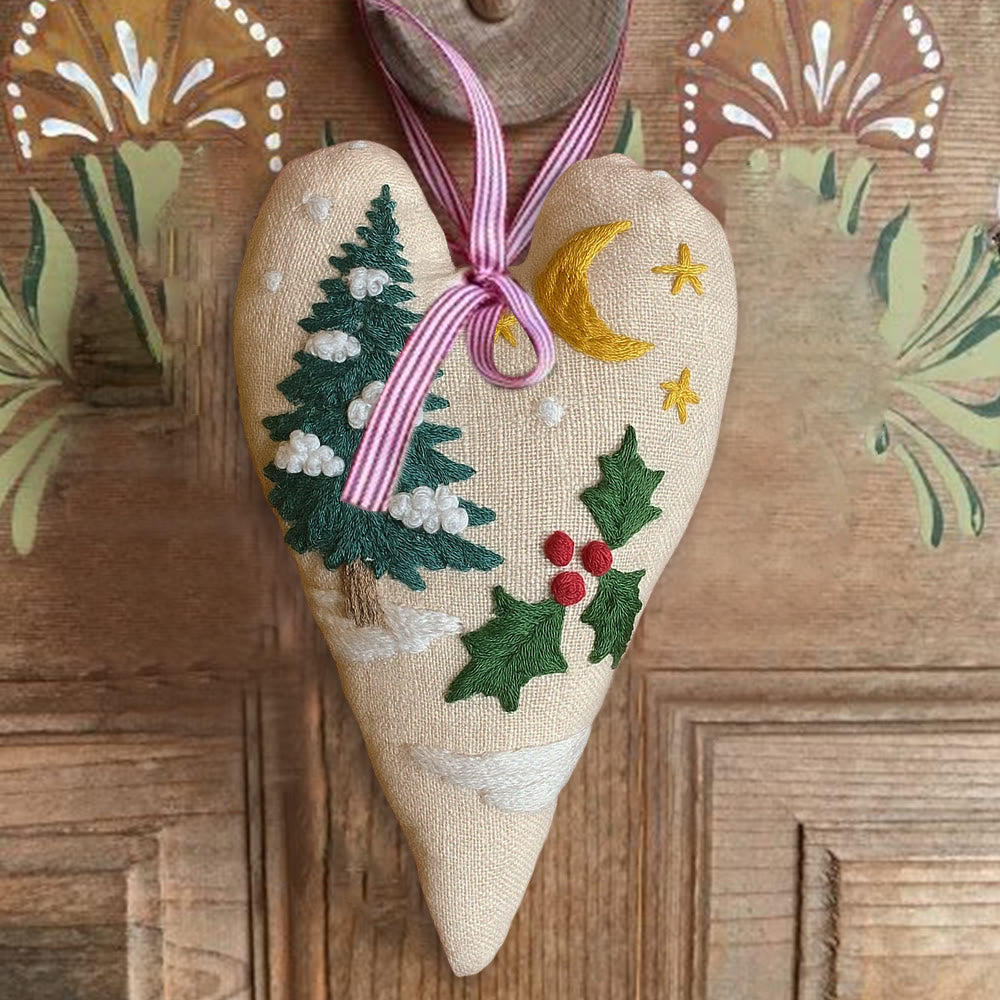 Rubbyoo Heart Embroidery Kit - Christmas Sign | Perfect For Home Decor | Handmade Needle Artwork