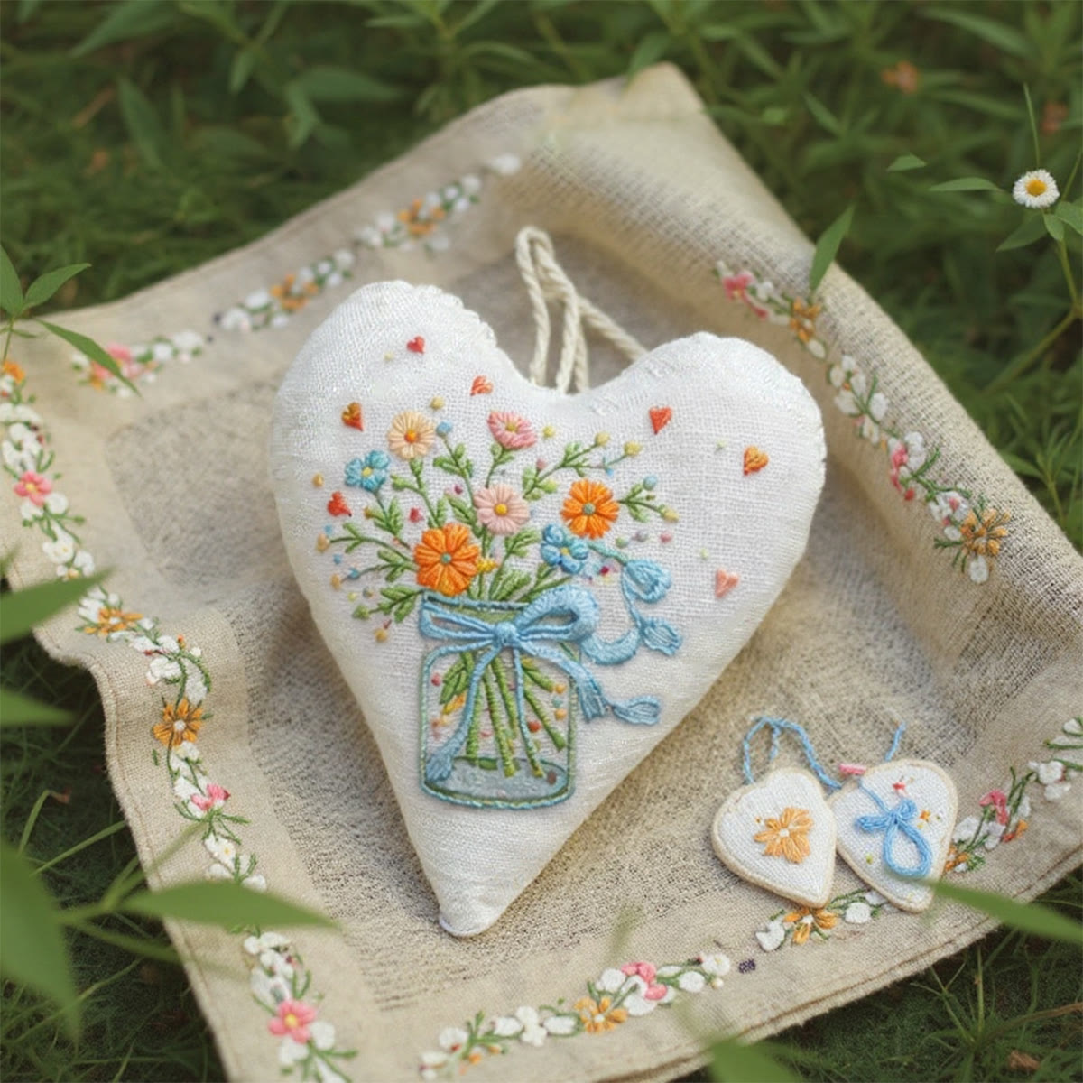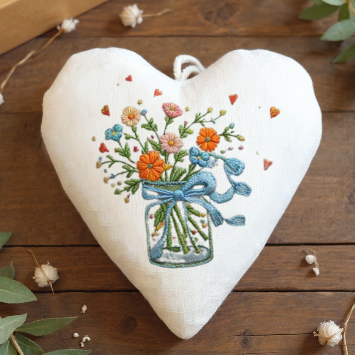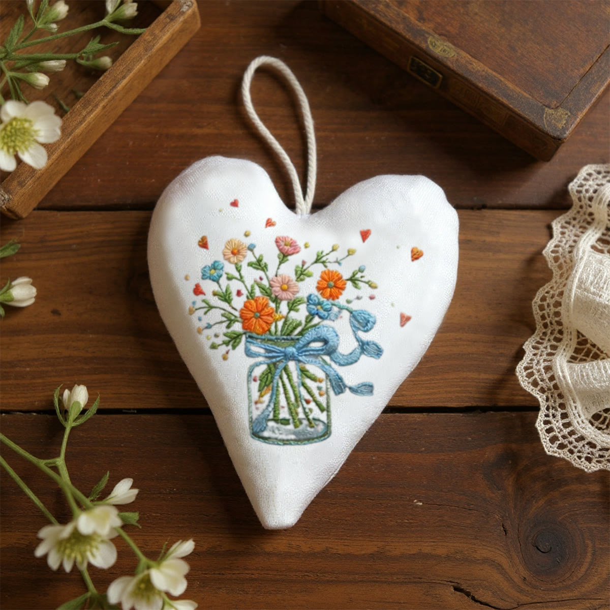 Rubbyoo Heart Embroidery Kit - Glass Vase Bouquet Mini Hearts | Refined Stitchwork Craft | Top Choice For Gifting