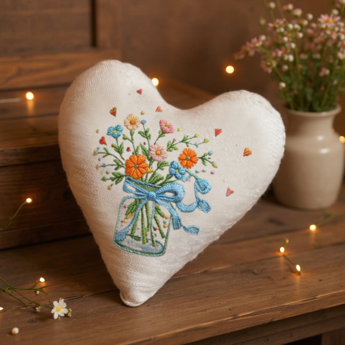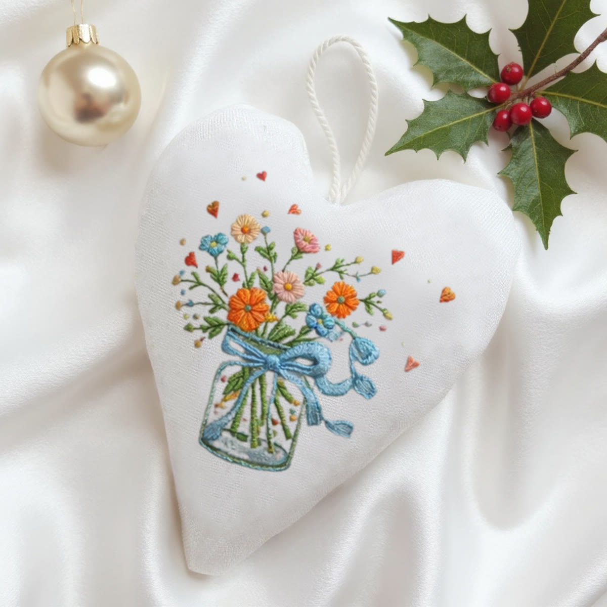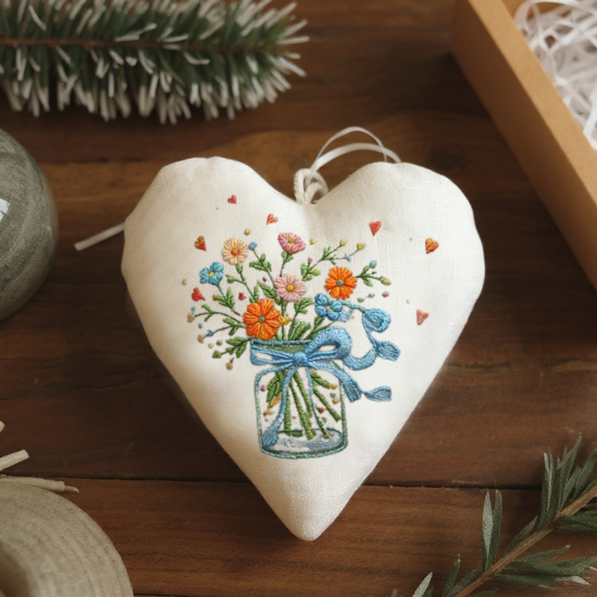 Rubbyoo Heart Embroidery Kit - Glass Vase Bouquet Mini Hearts | Refined Stitchwork Craft | Top Choice For Gifting
