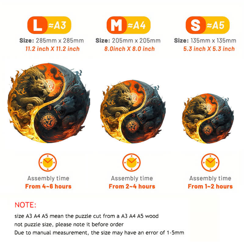 Rubbyoo Lion Spirits Yin and Yang - Wooden Jigsaw Puzzle
