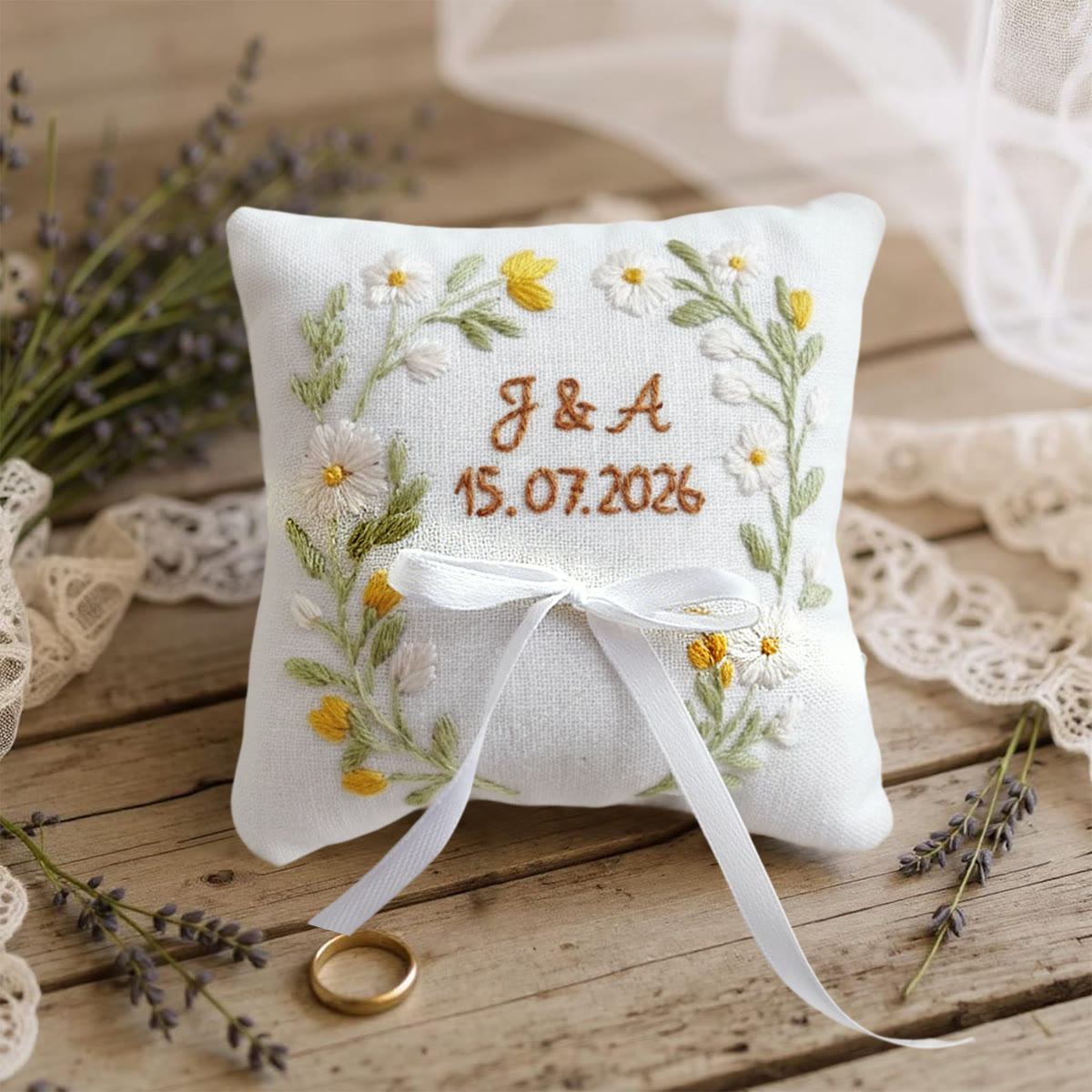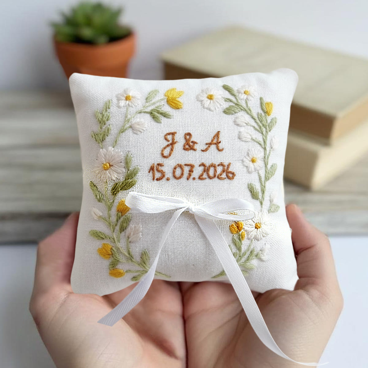 Rubbyoo Personalized Ring Bearer Pillow Embroidery Kit - Daisy Floral Wreath Decor | Exquisite Handmade Creation | Perfect Anniversary Gift