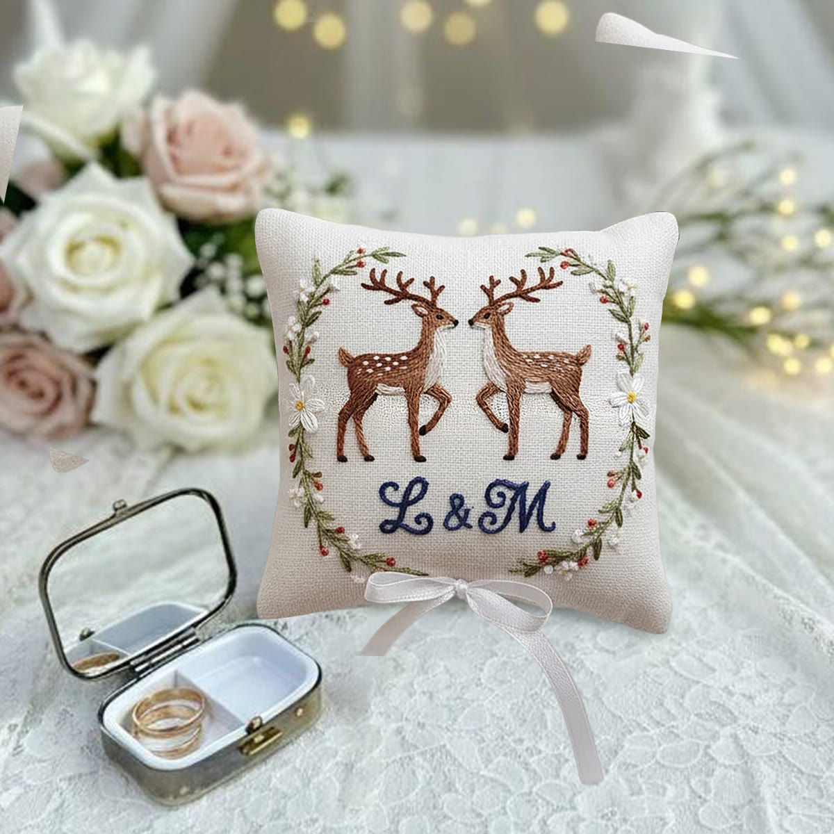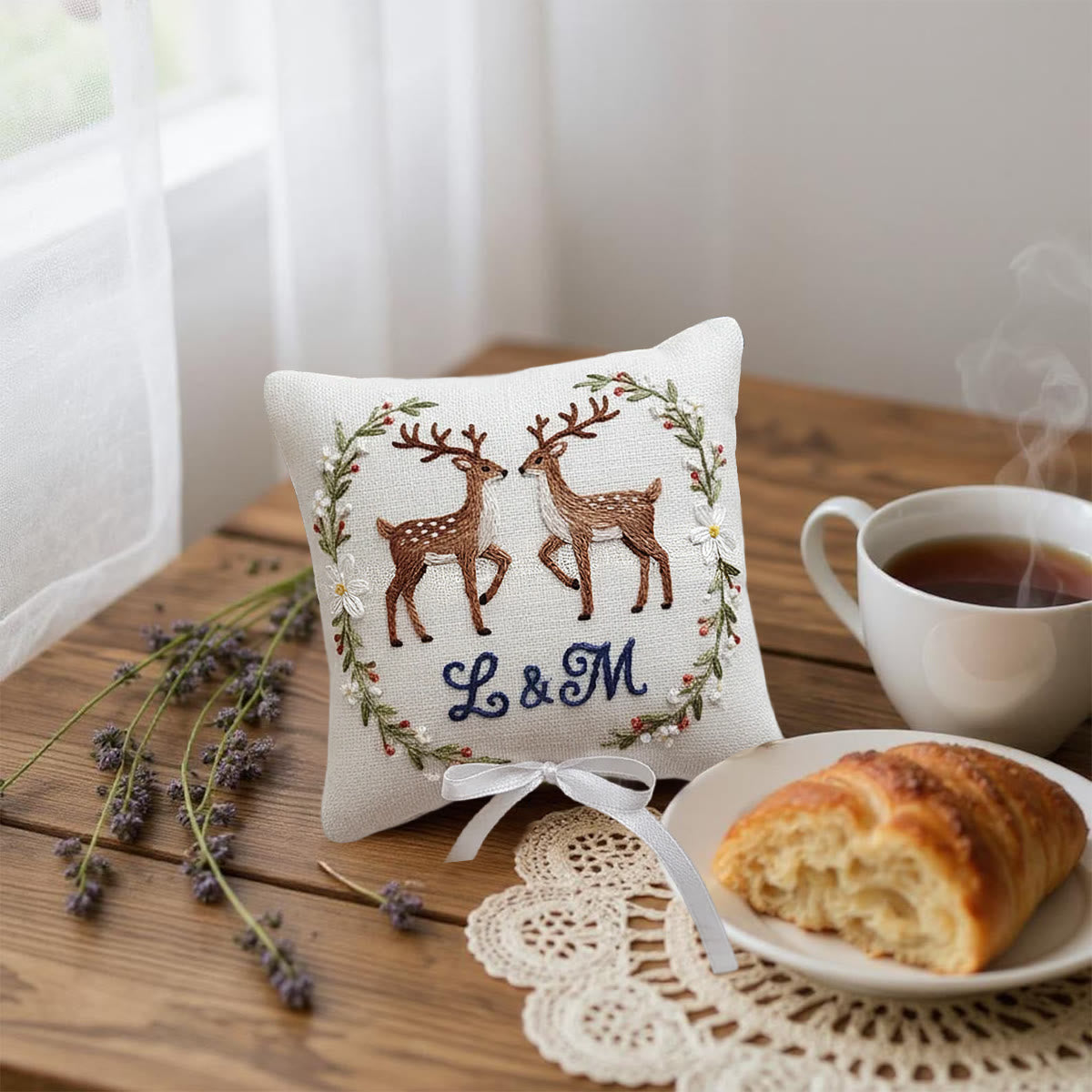 Rubbyoo Personalized Ring Bearer Pillow Embroidery Kit - Twin Deer Monogram Floral Wreath | Adorable Decor Item | Cozy Living Space Accents
