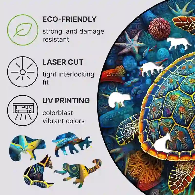 Rubbyoo Sea Turtle Watercolour - Wooden Jigsaw Puzzle