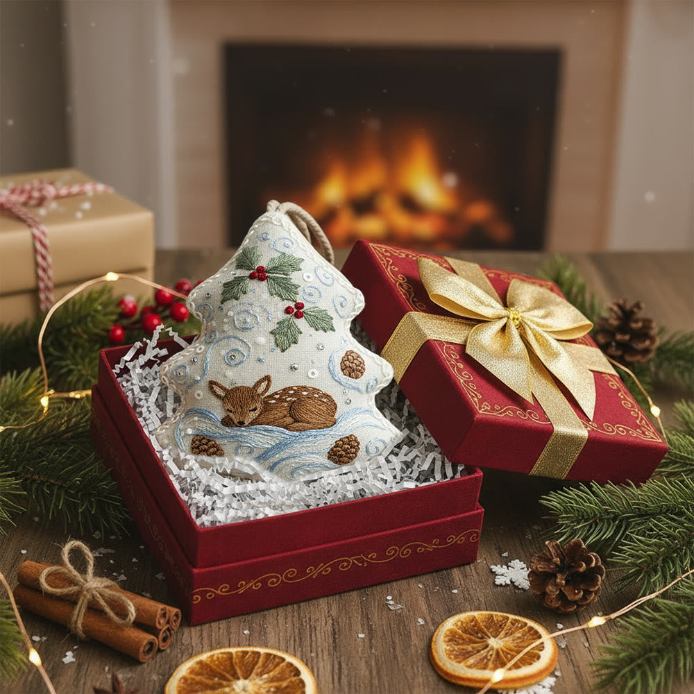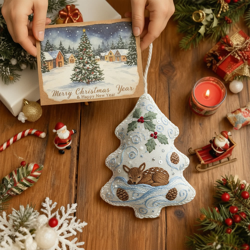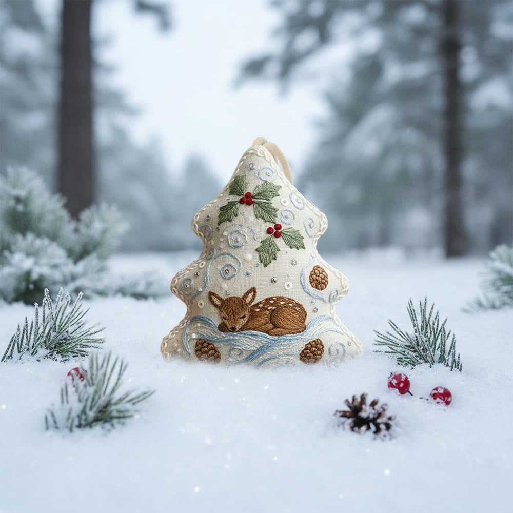 Rubbyoo Tree-shaped Embroidery Kit - Deer Pinecone Motif | Cozy Hanging Decoration | Top Gifting DIY Craft