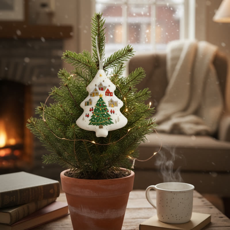 Rubbyoo Tree-shaped Embroidery Kit - Festive Town | Handmade Festive | Artisanal Xmas Accent