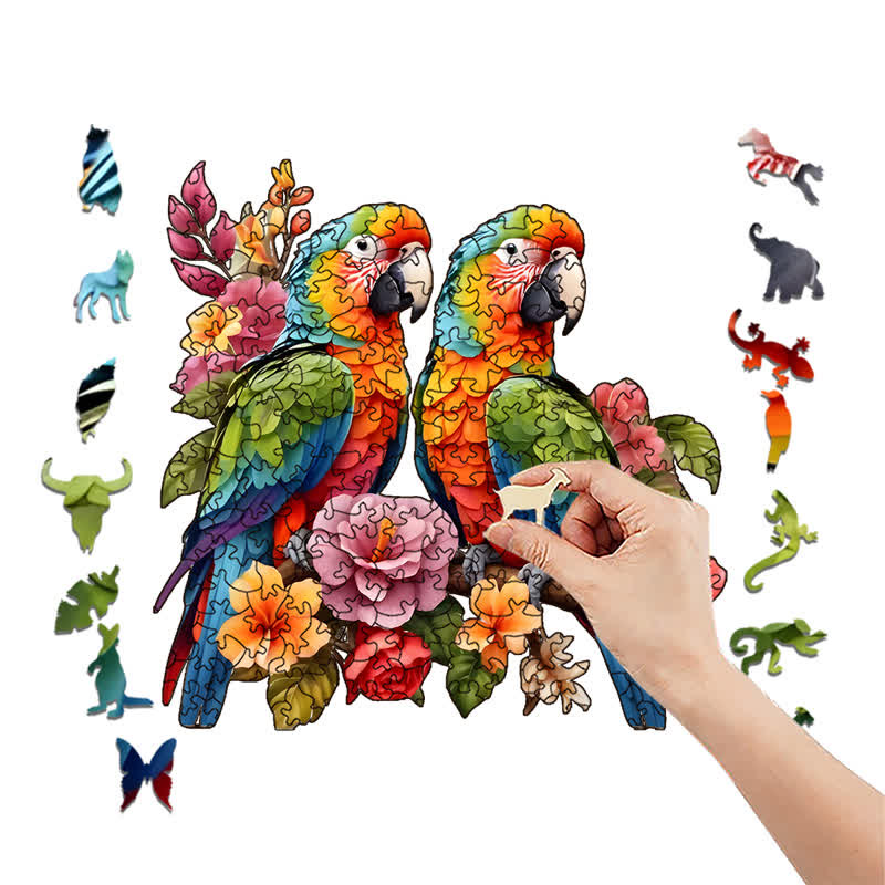 Rubbyoo Two Colorful Parrot With Flowers - Wooden Jigsaw Puzzle