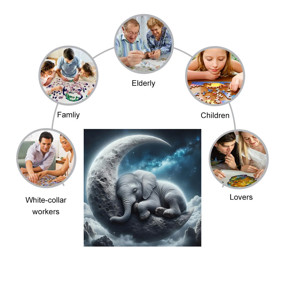 Sleepy Elephant on the Moon - Wooden Jigsaw Puzzle