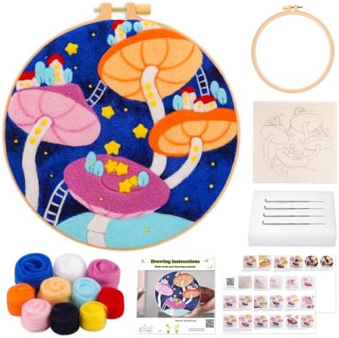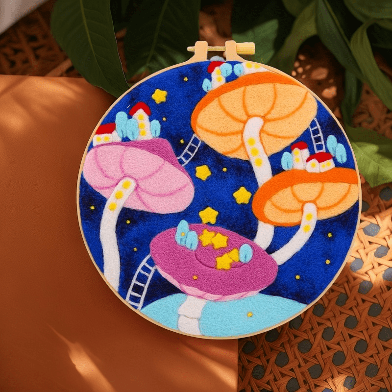 Starry Mushroom Needle Felt Kit With Frame - Diy Living Room Decoration | Graet Housewarming Gift