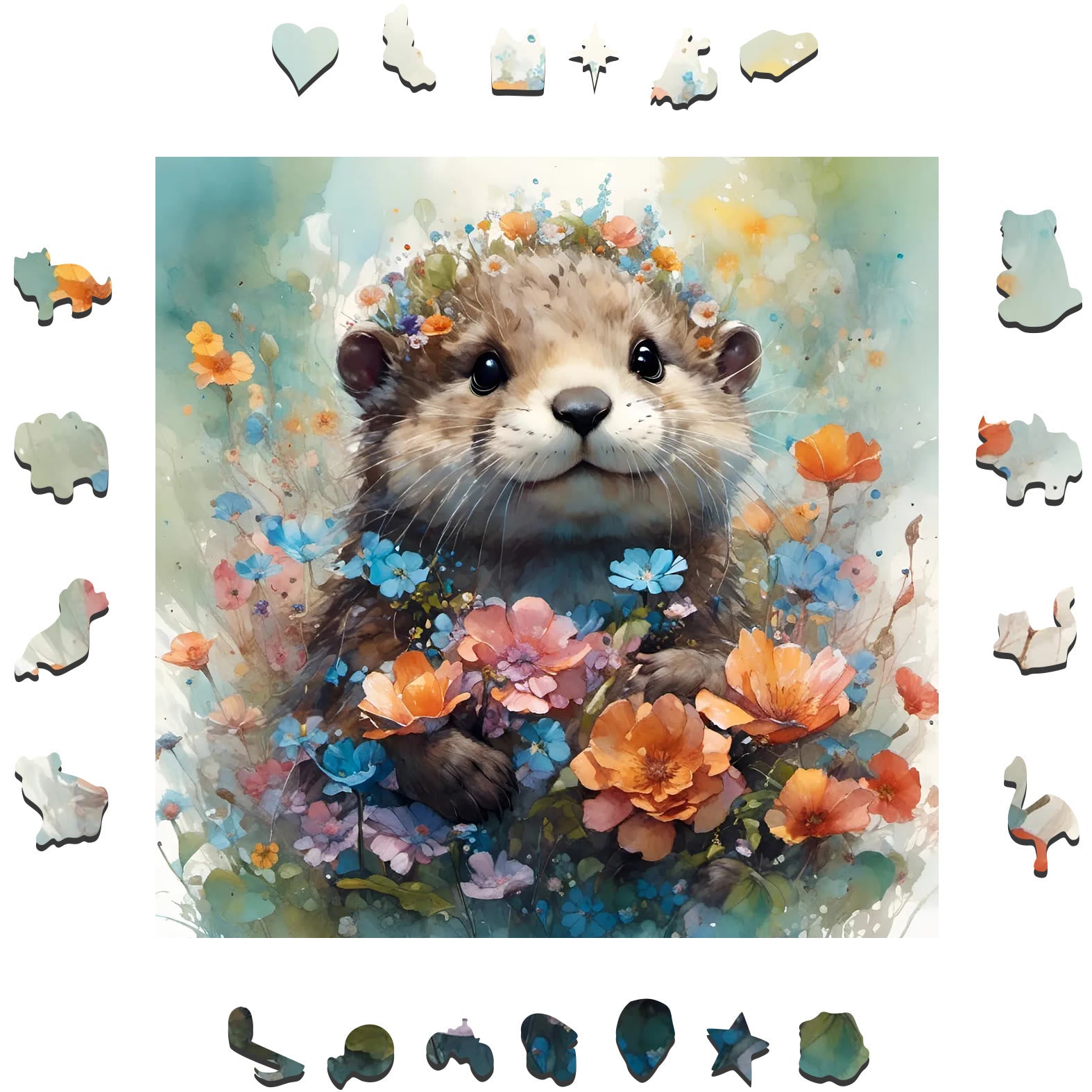 Surge Watercolor Otter - Wooden Jigsaw Puzzle