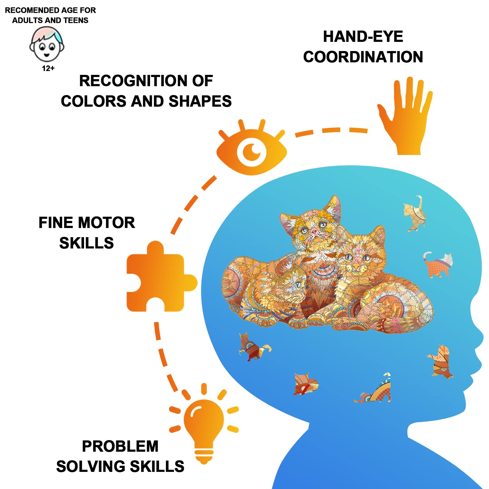 Puzzling helps in working out fine motor control to delay dementia and Alzheimer's, reducing anxiety, and providing a means of distraction​.