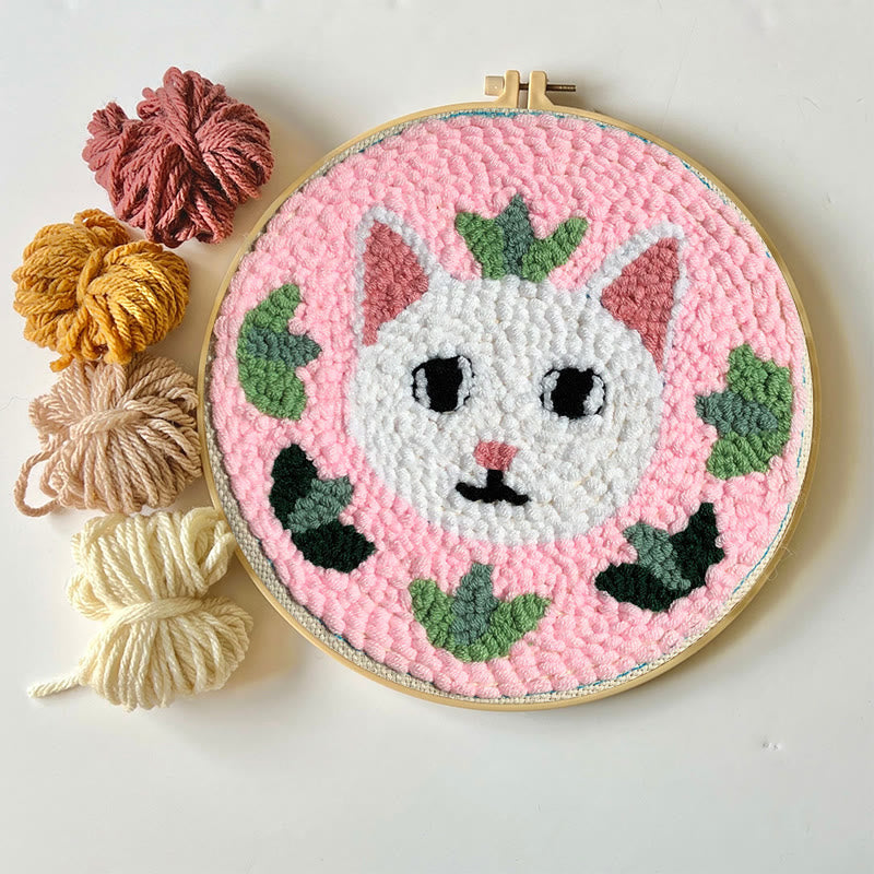 White Cat Punch Needle Kit - Creative Handmade Craft | Great Gift For Cat Lovers