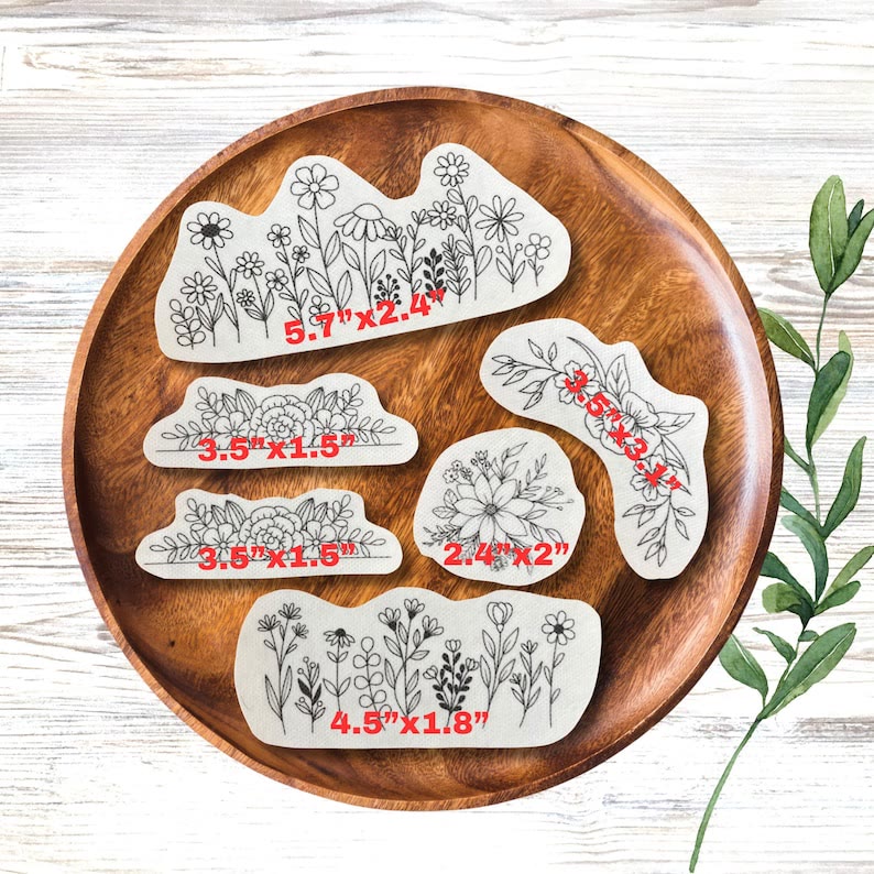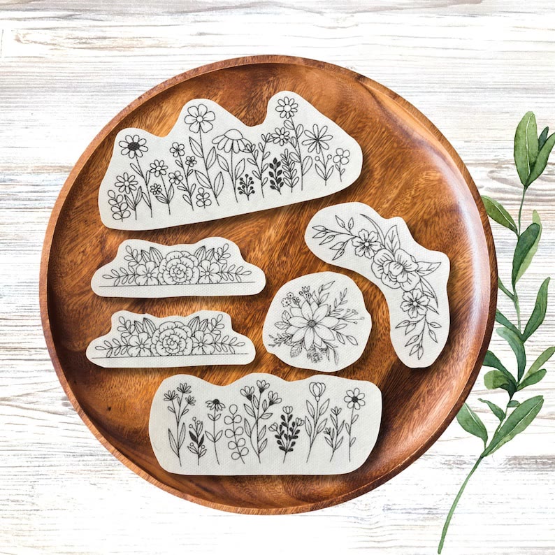 🧶The designs come pre-printed on washable adhesive backing paper. Simply peel off the backing, apply to fabric, and let your embroidery creativity run wild!